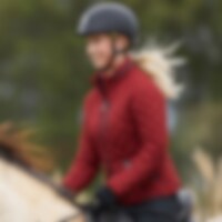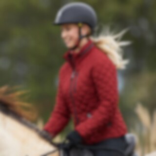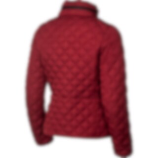 Kviltad jacka i figursydd modell med fast huva som går att gömma i kragen och försluts med dragkedja. Pälsimitation på insida krage. Vadderad med THERMOLITE®. Tre dragkedjeförsedda fickor fram samt en innerficka.