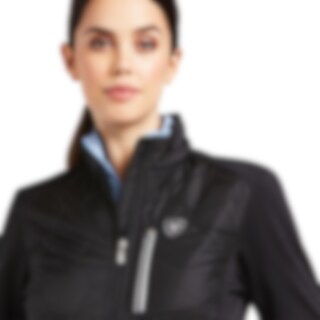Hybridjacka i materialmix med hög krage. Lätt vadderad fram- och baksida. Stretchpaneler i sidorna och på ärmar. Tre dragkedjeförsedda fickor fram.
