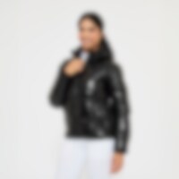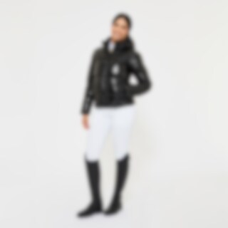 Sportig, varmfodrad puffer jacka med skimmereffekt i tyget. Vadderad med polyesterfoder som efterliknar och ger en känsla av dun. Jackan har en rymlig passform med resår i midjan. Praktisk tvåvägsdragkedja fram med hakskydd och ridsprund i sidorna som gör den funktionell och komfortabel på hästryggen. Avtagbar och reglerbar huva, hög fleecefodrad krage och ärmslut med ribbad mudd. Jackan är försedd med två rymliga fleecefodrade fickor samt en dragkedjeförsedd innerficka. Designad för kallare och torrare väderlek.