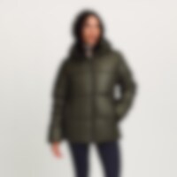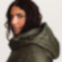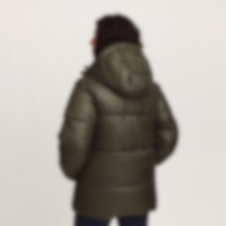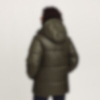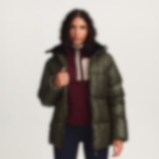 Sportig och varm vinterjacka med glansig yta. Vaddering av återvunnen polyester som har egenskaper som efterliknar och ger en känsla av dun.