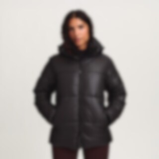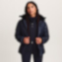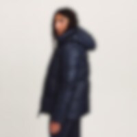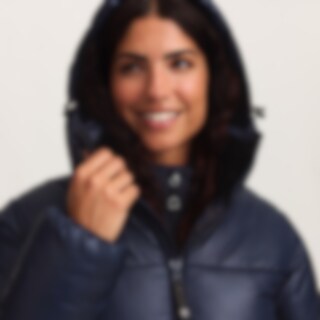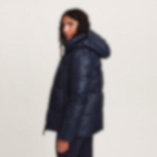 Sportig och varm vinterjacka med glansig yta. Vaddering av återvunnen polyester som har egenskaper som efterliknar och ger en känsla av dun.