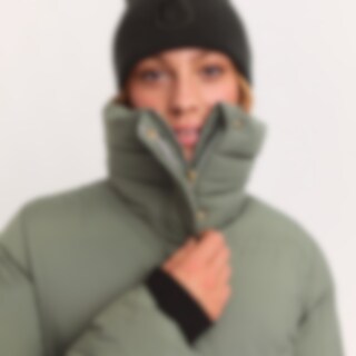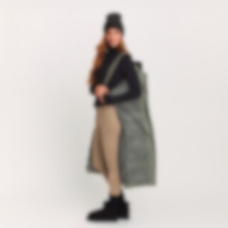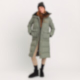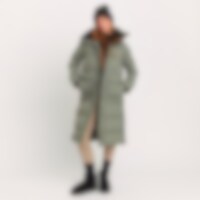 Lång varmfodrad kappa med hög fleecefodrad krage. Generös passform. Vadderingen av återvunnen polyester har egenskaper som efterliknar och ger en känsla av dun. Stora fickor med ficklock och tryckknappar fram. Dragkedjeförsedd innerficka. Praktiska funkti