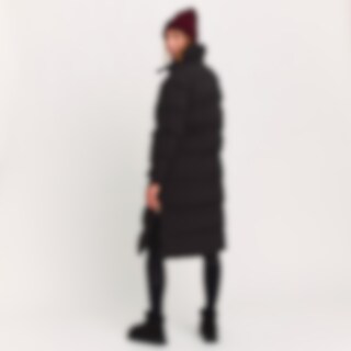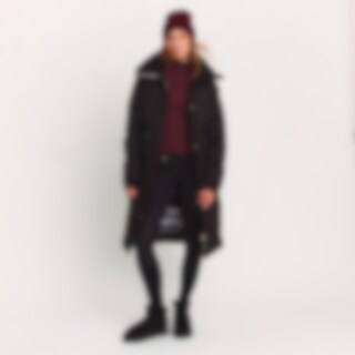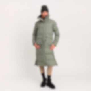 Lång varmfodrad kappa med hög fleecefodrad krage. Generös passform. Vadderingen av återvunnen polyester har egenskaper som efterliknar och ger en känsla av dun. Stora fickor med ficklock och tryckknappar fram. Dragkedjeförsedd innerficka. Praktiska funkti