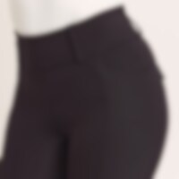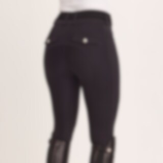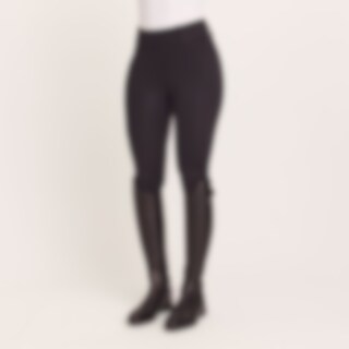 Stilrena ridleggings med sadelskärning i bekvämt och lättskött funktionsmaterial. Kvalitén är mjuk och stretchig samtidigt som den ger en formfast känsla. Normalhög midja med brett linningsband för ökad komfort. Linning med hällor och ficklock bak för att ge en look av en exklusiv ridbyxa. Djupa fickor fram för plats till mobilen. Knäskodda med PU grip som ger ett bra och mjukt fäste i sadeln. Den stilrena designen gör att den lämpar sig så väl till träning som till tävling.