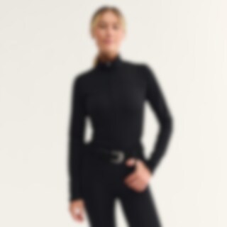 Långärmad funktionstopp i figurnära passform. Mjuk och stretchig kvalitet som ger god rörlighet och komfort. Den borstade insidan gör plagget mycket mjukt och behagligt att bära mot huden. Ståkrage med dekorativt rynk och dragkedjeöppning fram.