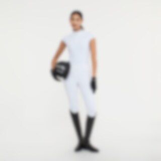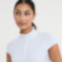 Elegant träning- och tävlingstopp i mjukt och stretchigt funktionsmaterial. Tävlingskrage med dold knappslå. Figurnära passform med prinsesskärning som ger en smickrande silhuett. Fina detaljer med krås på kragen och holkärm.