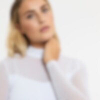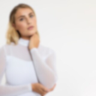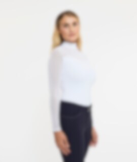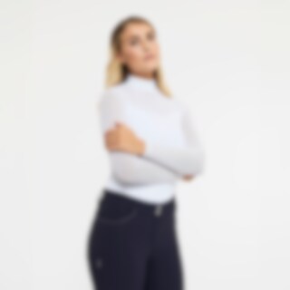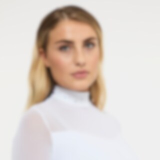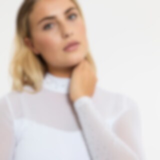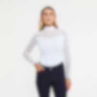 Långärmade tävlingstopp i mjukt och följsamt funktionsmaterial. Kvalitén är snabbtorkande och smutsavvisande. En mycket dekorativ tävlingstopp med sina detaljer av meshtyg och strasstenar. Ståkrage och dold dragkedja bak.