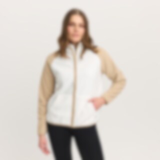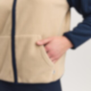 Fleecejacka med avslappnad passform i enkel och stilren design. Tunn och mjuk kvalitet. Hög krage och praktisk dragkedja fram. Elastiskt kantband vid ärmslut, krage, dragkedja och i nederkant som på ett snyggt sätt plockar upp den matchande färgen på ärmarna. Två fickor i sidorna.