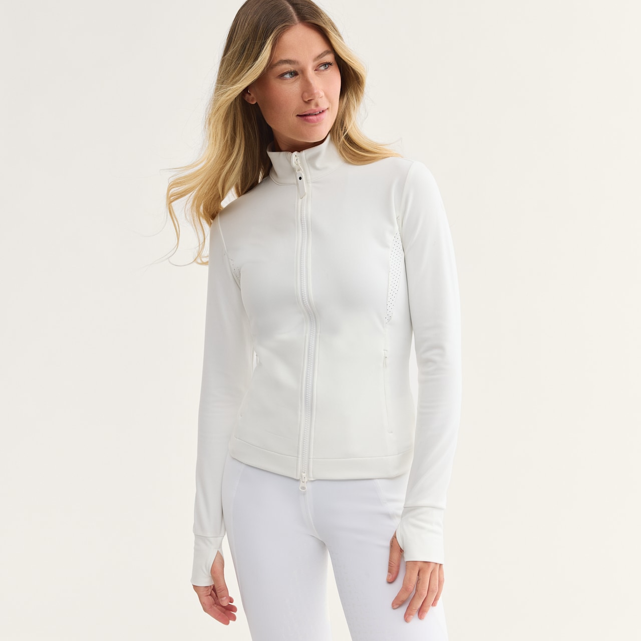 Zip cardigan i mjukt och stretchigt funktionsmaterial. Kvalitén är fukttransporterande och snabbtorkande och håller dig varm och torr. Den stretchiga kvaliten ger en mycket god komfort och god rörlighet. Partier med perforeringar som skapar en god andasfunktion. Hög krage med dubbla lager och hakskydd som gör att tröjan sitter bekvämt och inte skaver. Tvåvägsdragkedja och två diskreta dragkedjeförsedda fickor fram. Ärmslut med tumhål. Den kroppsnära passformen gör även tröjan perfekt som lager-på-lager.