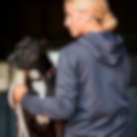 Sweatshirt med huva i ett mjukt och skönt funktionsmaterial med borstad insida. Öppen genomgåendeficka fram och mudd i ärmslut och nederkant. Dekorativ knapp på huvans framsida.