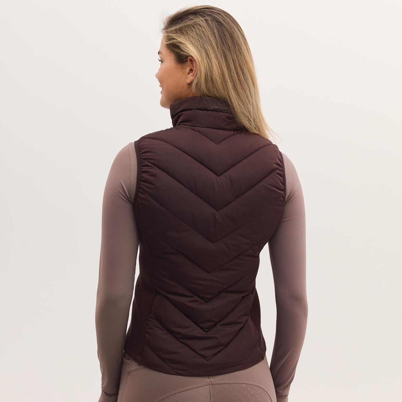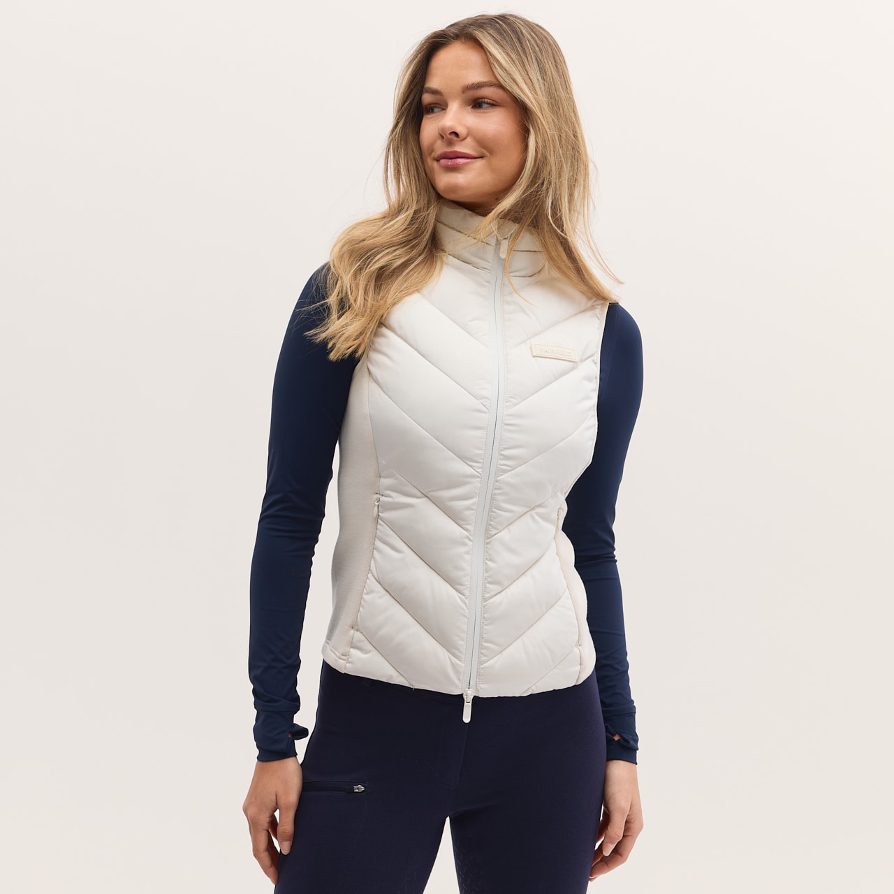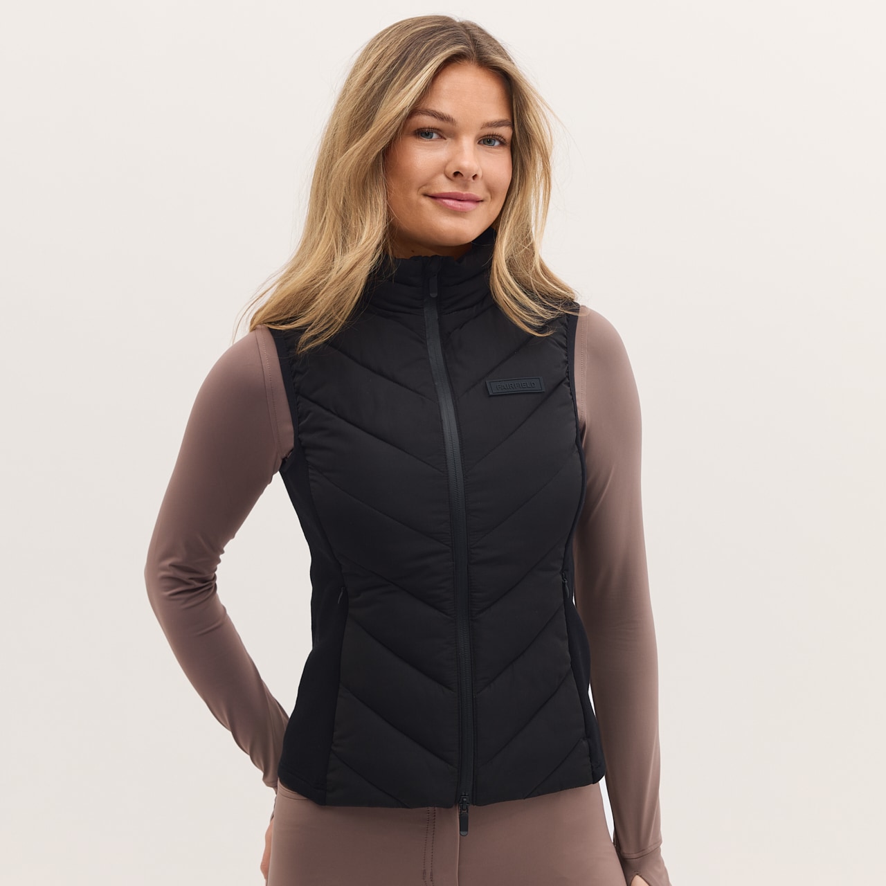 Sportig funktionalitet med en stilren look. Västens hybriddesign ger både värme och ventilation där det behövs, vilket gör den perfekt för både intensiva ridpass och vardagsanvändning.