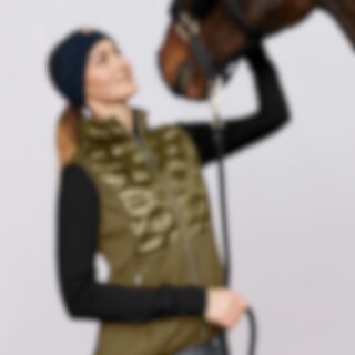 Figurnära pufferväst med skimmereffekt på tyget. Vadderad med polyestervadd med dunliknande känsla. Två fickor med dragkedja. Sidopaneler i power stretch fleece med borstad insida för optimal komfort och passform. Krage med fleece på insida. Dragkedja i metall med logohänge.