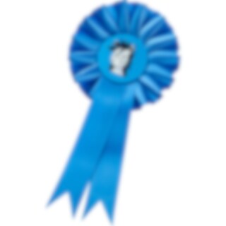 Prisrosett med Mulle i mitten. Levereras med fastsättningsclips som passar på träns/grimma. Total längd: 20 cm, bredd: 10 cm.