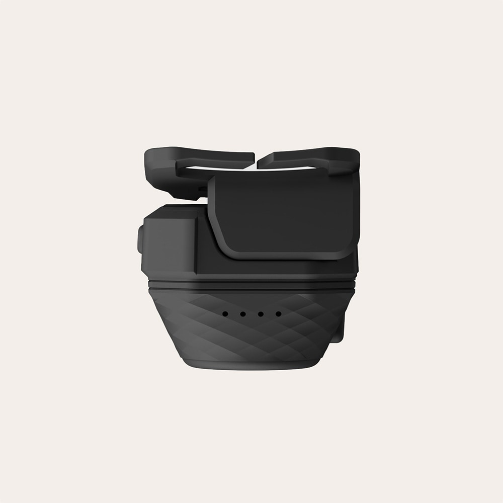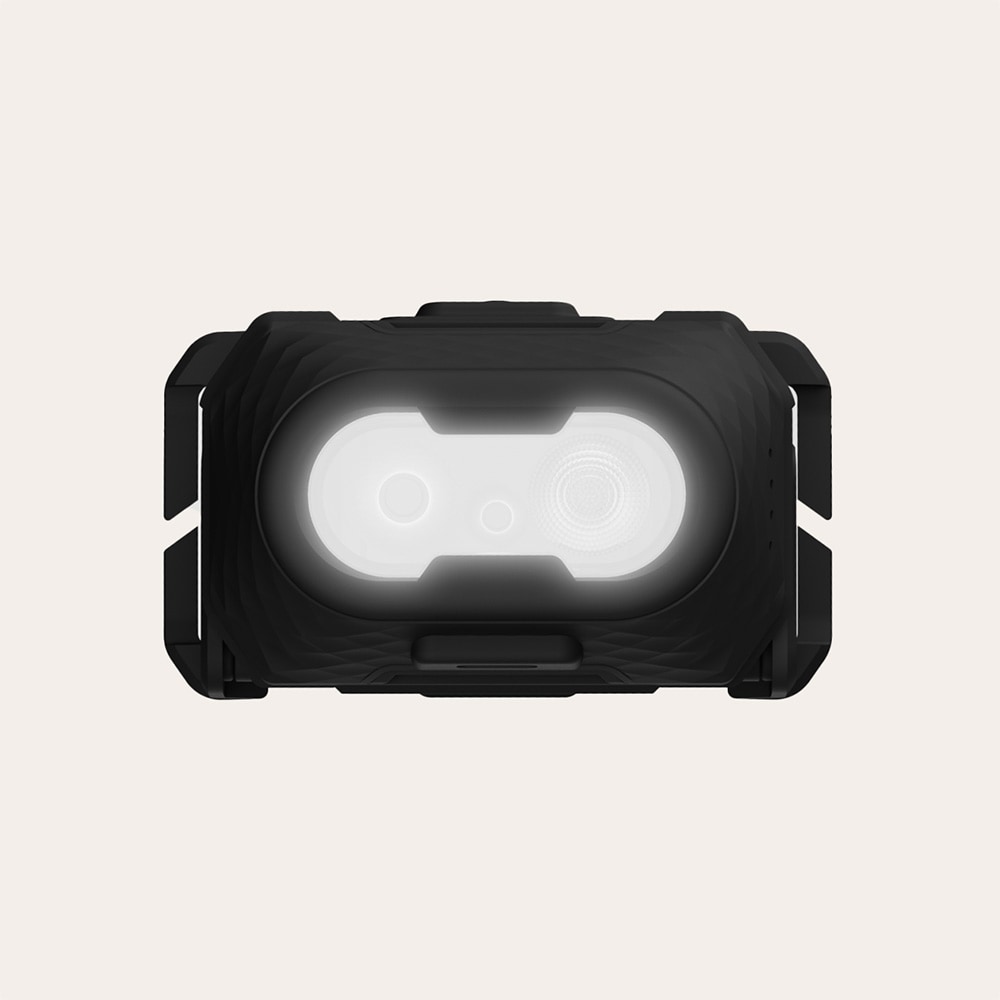 Lätt och bekväm uppladdningsbar lampa (LiPo 700mAh) med flexibelt fäste. Kombinerar långsträckta spotlight och nära strålkastarljus med rött och orange ljus. Lampan är utvecklad för enkel montering på Y/elms hybridhjälm för att hjälpa till att öka föraren