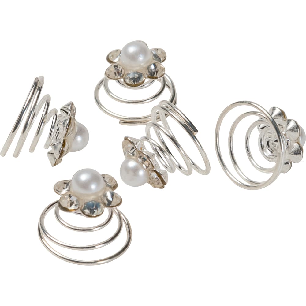 Dekorativ twister med en enkel creme färgad pärla som kan snurras in i håruppsättningar eller i hästens knoppar. Ø 1 cm.