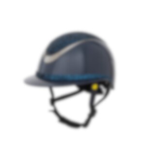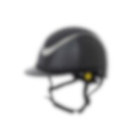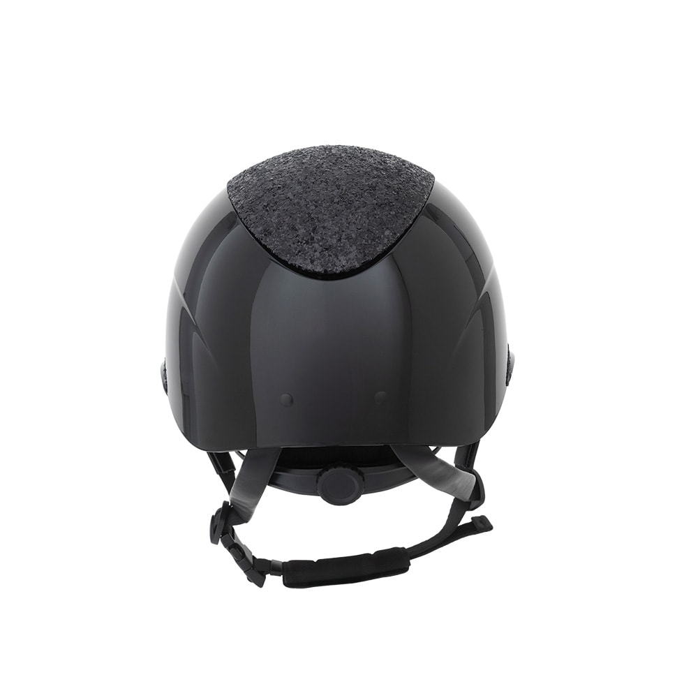 Ridhjälm i högblank metallicfinish, dekorerad centerplatta samt dekorationsdetalj ovanför skärmen. Låg vikt samt ventilation fram och bak ger en hjälm som är bekväm under hela ridpasset. Justerbar med skruv baktill för goda inpassnings möjligheter. Trepun