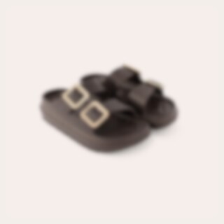 Bekväm och trendig toffel i EVA material med tjock sula och låg vikt. Ställbara band. Roséguld färgade spännen med vita stenar.