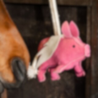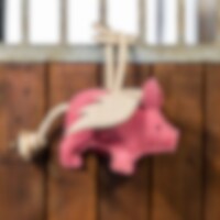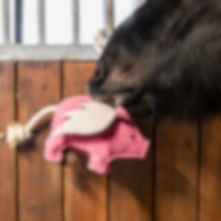 Boxleksak i slitstark mjukt stoppad mocka utformad som en gris. Ca 25 x 17 cm.